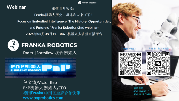 PNP机器人专注于具身智能方向,推出系列基于模仿学习、强化学习、VLA等具身机器人平台,推动从数据采集、标注、到推理模型、泛化验证。作为Franka机器人战略合作伙伴,旗下推广的具身智能平台—基于Franka机器人的科研平台,在具身智能领域具有强大影响力。全球知名实验室/研究机构如Google Deepmingd,、斯坦福大学、加州伯克利、清华大学等拥有广泛的生态和用户基础;在IROS, ICRA, CoRL等全球机器人顶会,几乎50%以上用Franka机器人研究验证,不管在高校从事科研,还是在具身智能公司从事推理开发,FRANKA机器人因为支持ROS/ROS2、Python、Matlab、Issacc Sim、MuJoCo等开源生态,是全球具身智能领域首选研究平台。